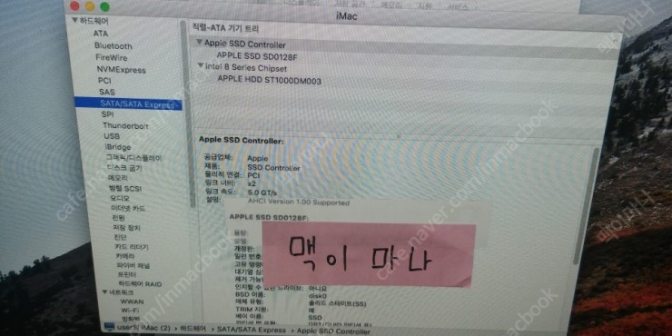 특이사항 없으며 포맷후 맥os 설치된 상태